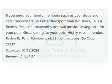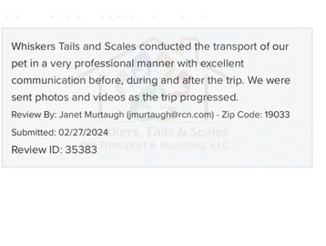 Phone: 678-677-0071 Email: transport@whiskerstailsandscales.com