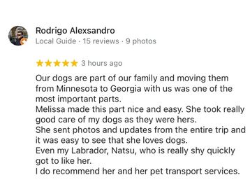 We are proud to have been featured on Channel 6 ABC News Philadelphia for reuniting a grieving sister with her late sibling's beloved pet. In addition, our team assisted in the rescue of several Husky sled dogs in the Federal Krabloonik case in Aspen, Colorado and successfully transported 25 pets to Canada, saving them from euthanasia. With hundreds of pet transports under our belt, our commitment to professionalism, cleanliness, and a genuine love for the animals in our care is what truly sets us apart.