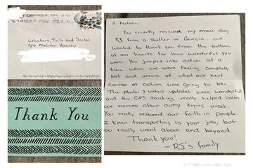 I had to pick up RJ from an unfortunate situation at Animal Control. As his mommy hired a transporter who was arrested during transporting and RJ and 5 other fur and purrr babies were sent to Animal Control. Image of Thank You card is from RJ's moms daughter.